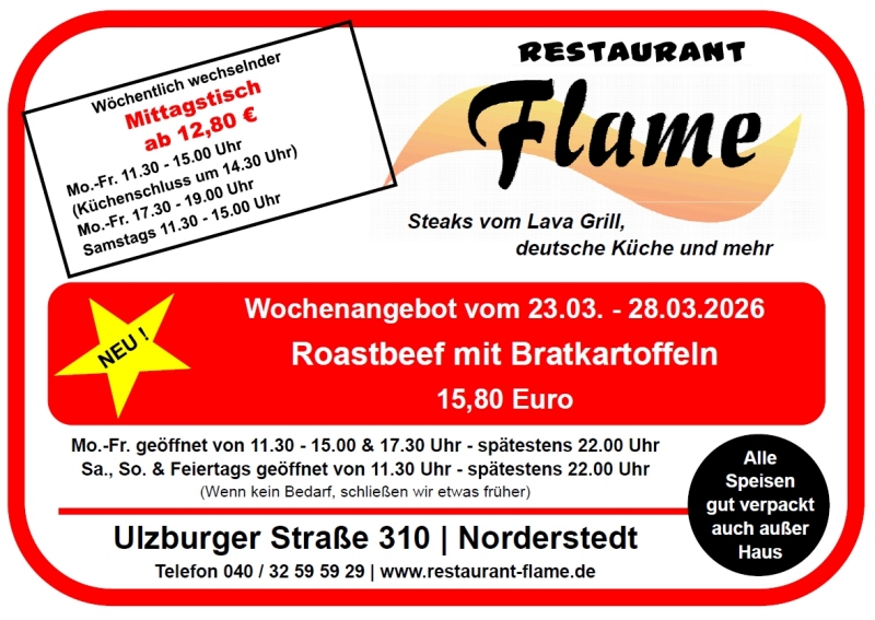 Mo.-Fr. = 11.30 - 15.00 & 17.30 Uhr - spätestens 22.00 Uhr.